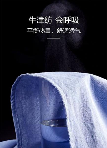 第一代牛津纺,具备全棉透气、性价比高、多色易搭配等优势,但其不足之处在于其面料无弹力。