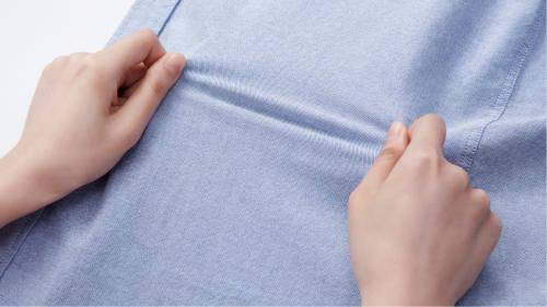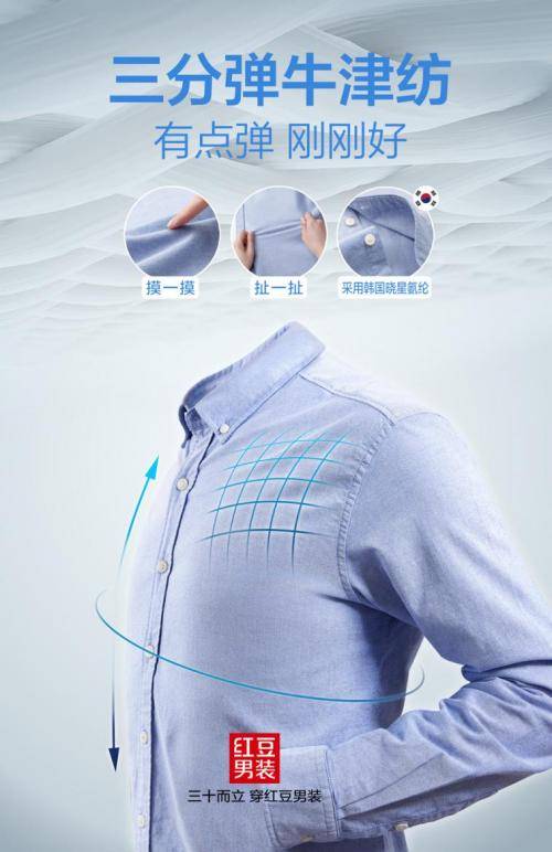 曾有用户反馈,称牛津纺衬衫存在一大核心痛点,即:牛津纺布紧绷不舒适、面料硬不柔软、洗涤易变形。为此,红豆男装针对其痛点使出了杀手锏,在纬纱中加入了2%韩国晓星氨纶丝,从而实现横向弹力,舒弹有型。