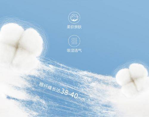 而新疆长绒棉又以阿克苏所产尤佳,其纤维柔长,洁白光泽,弹性良好,阿克苏长绒棉的棉花细度为7510余米/克,棉纤维长度38-40毫米,长度超越羊绒,同时使用了突破纺织极限的种植方式、采摘方式、纺纱工艺,使棉纤维更保暖柔软。